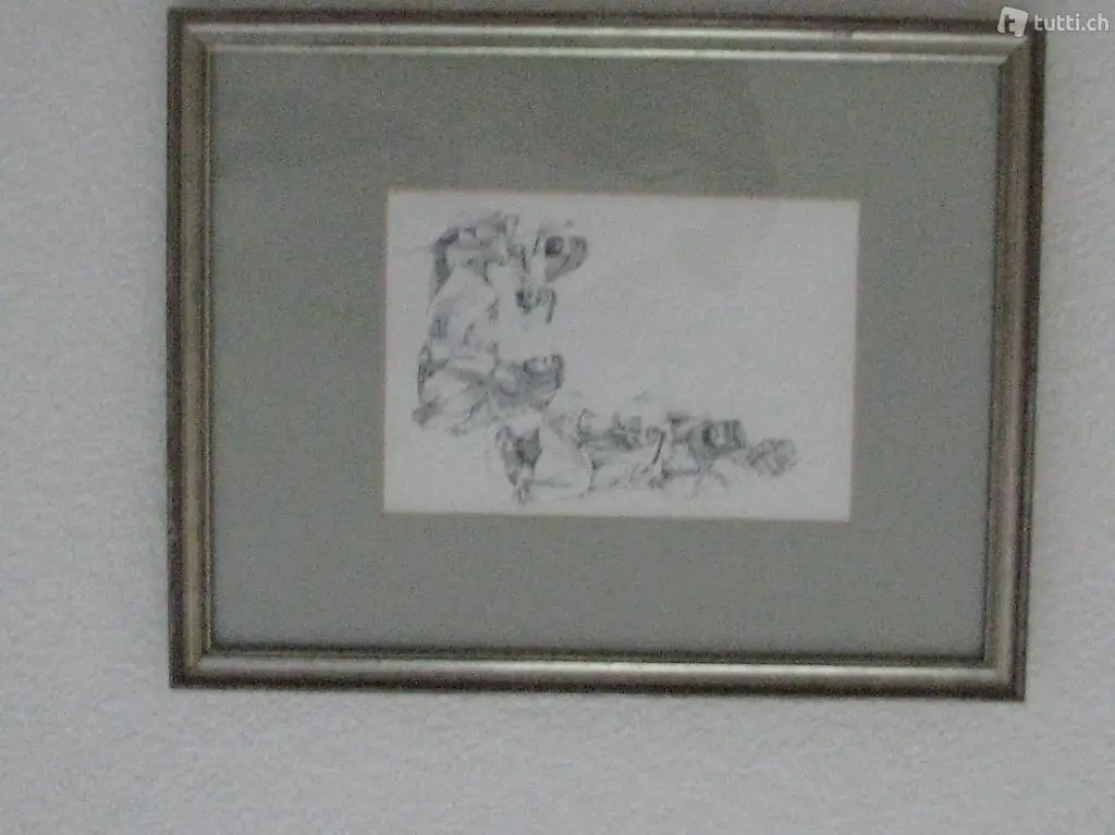 3 x Druck in Bleistift in Holzrahmen (29x25cm)