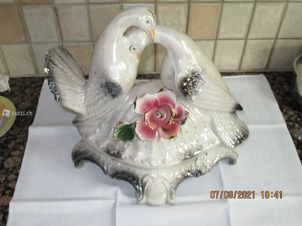 eine feine Taubendarstellung mit feiner ROSE, siehe Fotos, Masse siehe Bilder, stammt aus