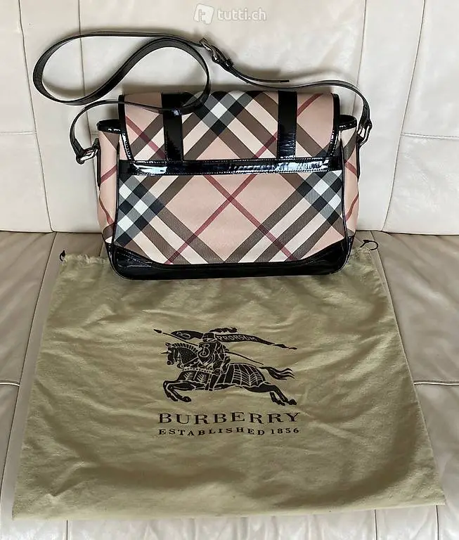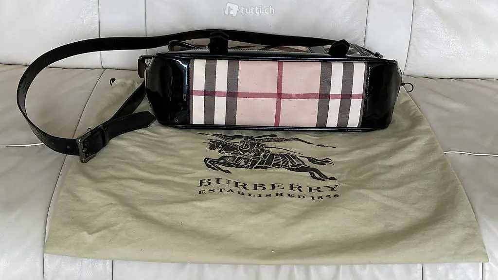 exclusive, BURBERRY Tasche (Crossbody Bag) , Trägerbreite 2,5cm, 5- Fach verstellbar, Trägerlänge 116 bis 120cm, Taschenlänge 36cm, Bodenbreite 11cm, h 28cm, Verschluss mit zwei versteckten Magnetknöpfen vorne, beiges Innenfutter, innen grosses Seitenfach mit Reissverschluss und zwei kleinen Innenfächern, neuwertig, nicht benutzt, NP Fr. 898.-