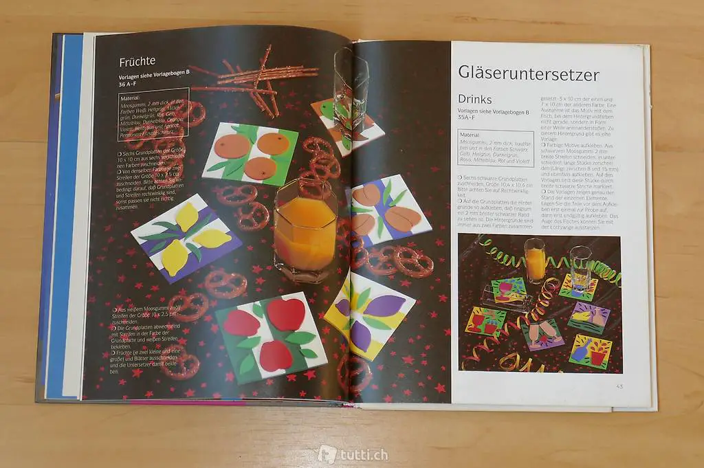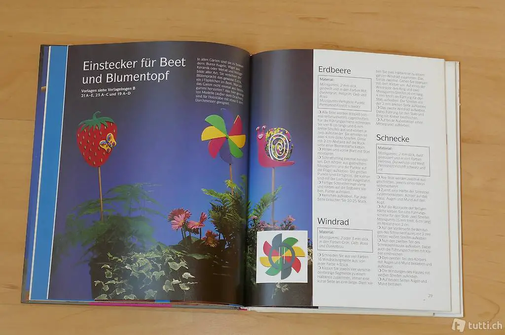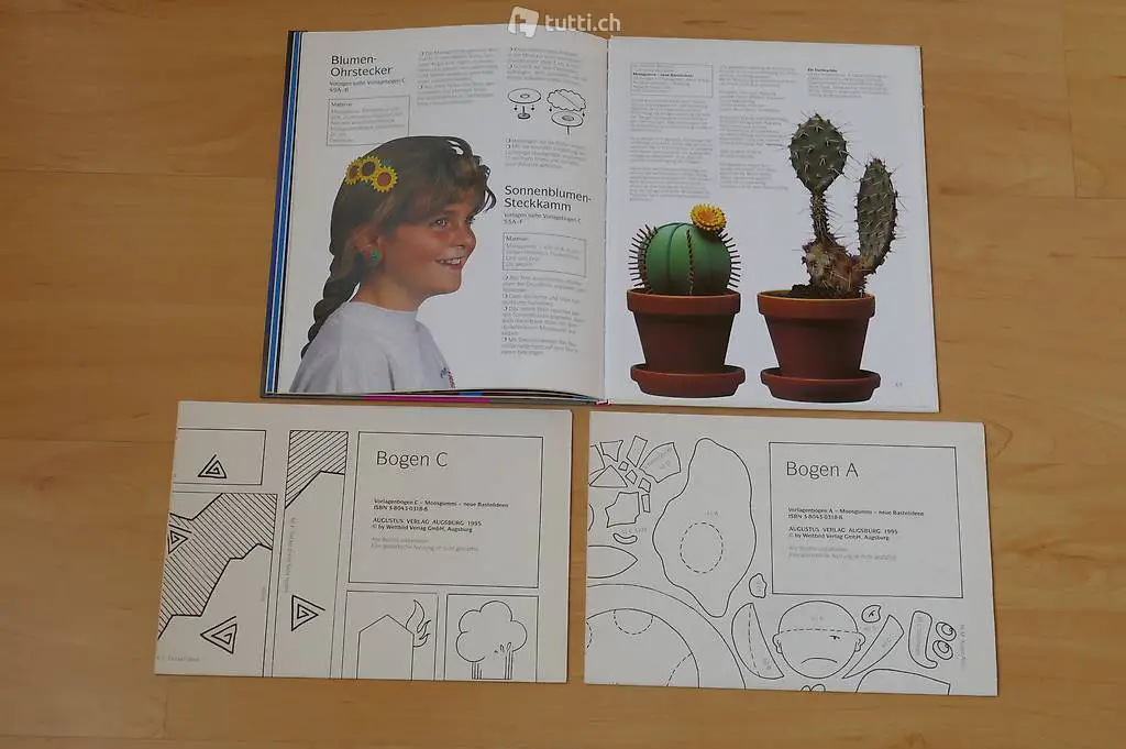 Verkaufe wegen Nichtgebrauchs das nie gebrauchte farbige Gestaltenbuch "Moosgummi - neue Bastelideen mit Vorlagen in Originalgrösse". Was mit Moosgummi alles hergestellt werden kann, ist erstaunlich. Die detaillierten Anleitungen, die vorhandenen Fotografien sowie die drei grossen Vorlagebogenseiten im Format je 100x70 cm (Originalgrössen der Bastelarbeiten! ) erleichtern das Herstellen der Arbeiten. Der kindlichen Fantasie sind dabei keine Grenzen gesetzt. Die Arbeiten sind teilweise bereits für kleinere Kinder geeignet.