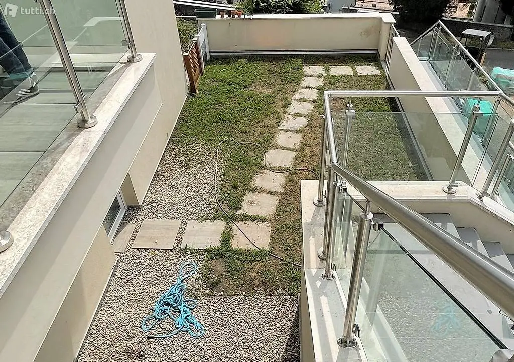 APPARTAMENTO di 4,5 locali con giardino, situato in una zona residenziale tranquilla e soleggiata, strada a traffico ridotto, con bella vista aperta, a pochi minuti dalla stazione del trenino Lugano-Ponte Tresa e dalla frontiera, a ca. 20 min. d'