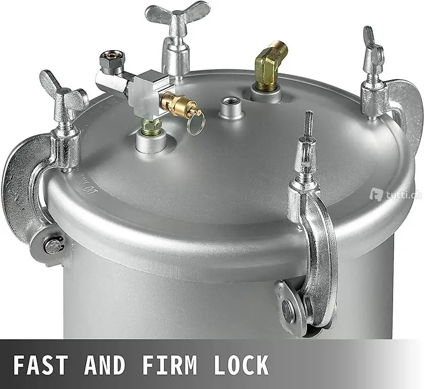 Die Druckbehälterfarbe ist mit einem Manometer und einem Flüssigkeitsdruckregler für genaue Einstellungen ausgestattet