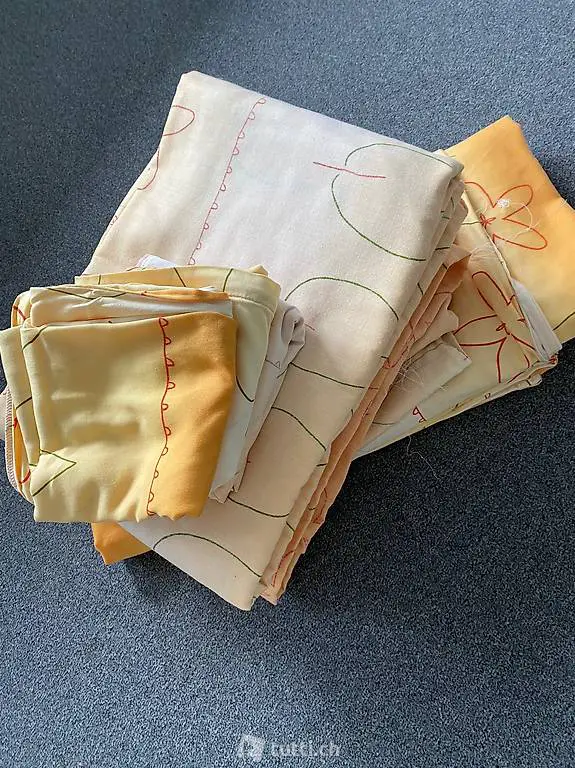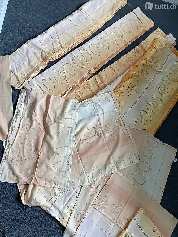 in gelb-Orange. Kissenbezüge: 3 quadratische, 2 grosse rechteckige und 2 kleine Rechteckige. Guter Zustand. Abholen in Minusio oder Stadt Luzern oder Versand möglich. Preis pro Bettwäsche.