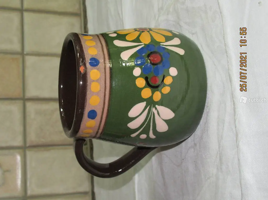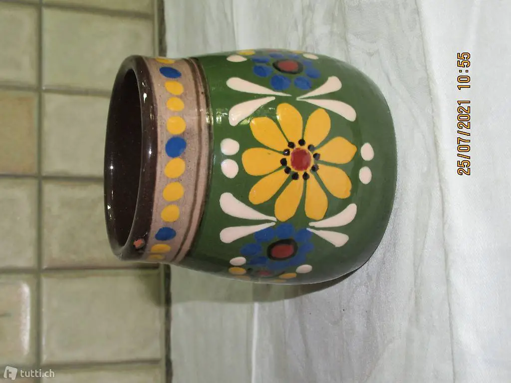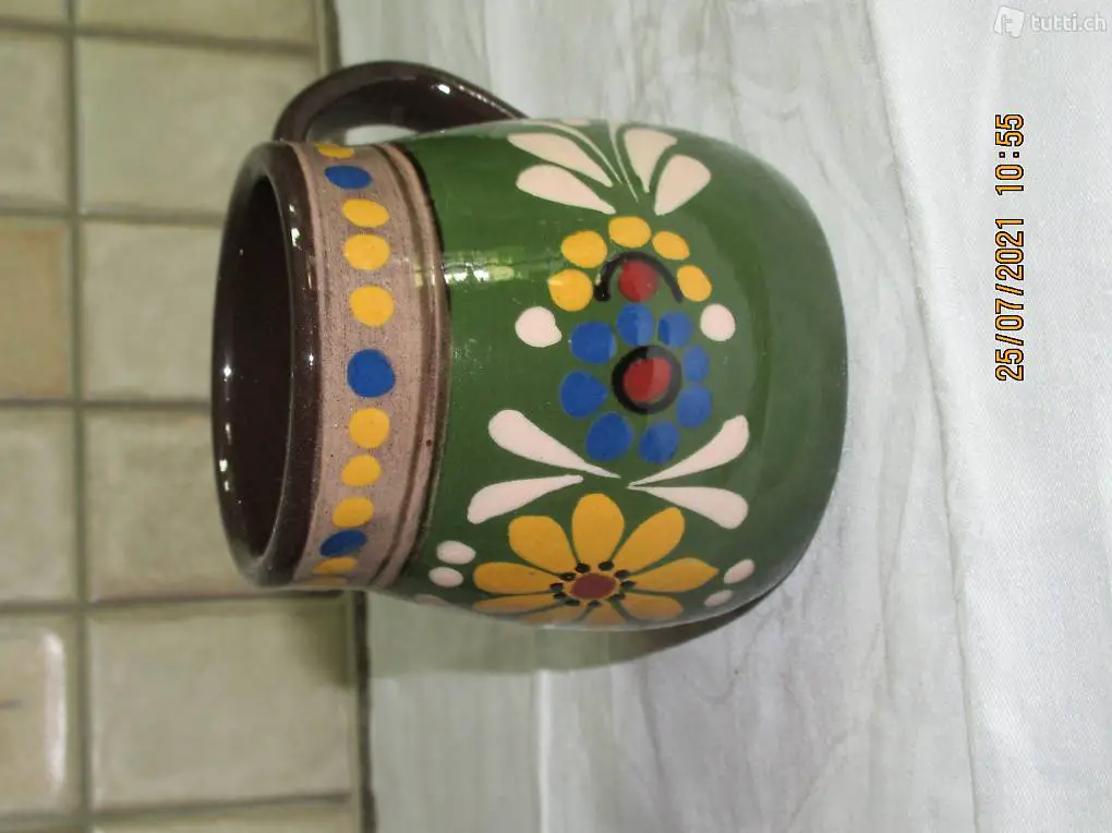 Blumenvase, Rahm Krüglein Inhalt 0,5 Liter, Zustand und Masse siehe Bilder, Vermute Kohler Töpferei, Schüpbach Emmental