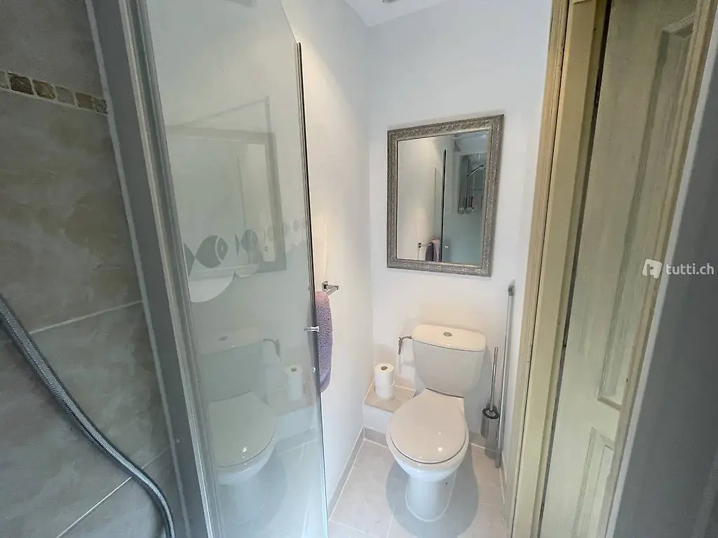 Auf dieser Etage befindet sich auch das Duschbad mit WC. Klein aber fein mit Duschabtrennung aus