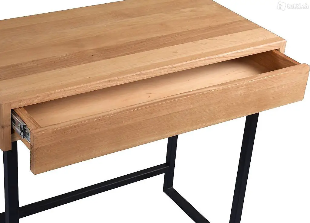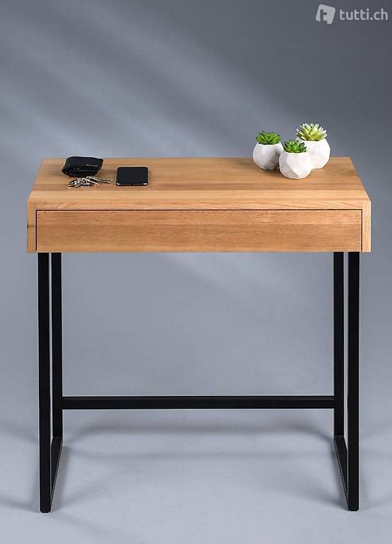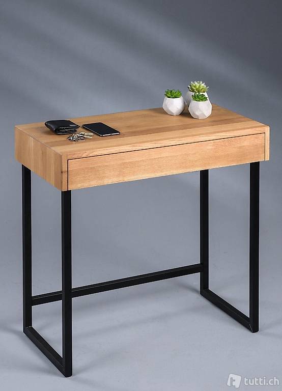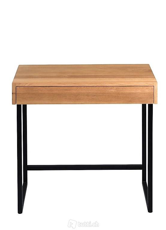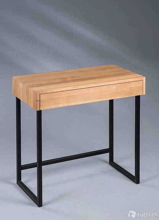 Jazz», Wildeiche massiv geölt, Metall schwarz. Praktische Schublade mit Metallauszug und Schliessdämpfer. Könnte auch als kleiner Scheibtisch genutzt werden.