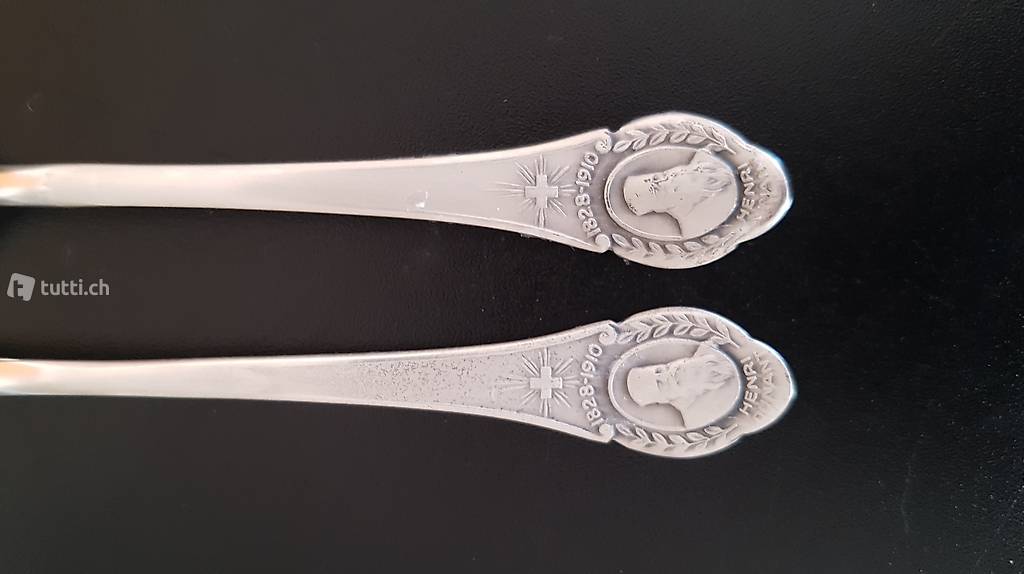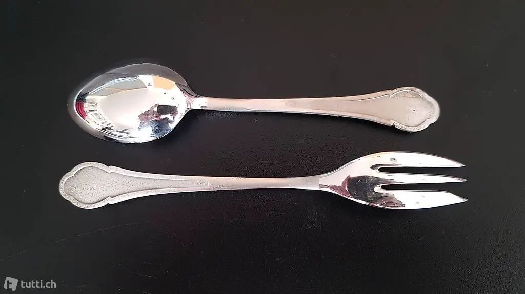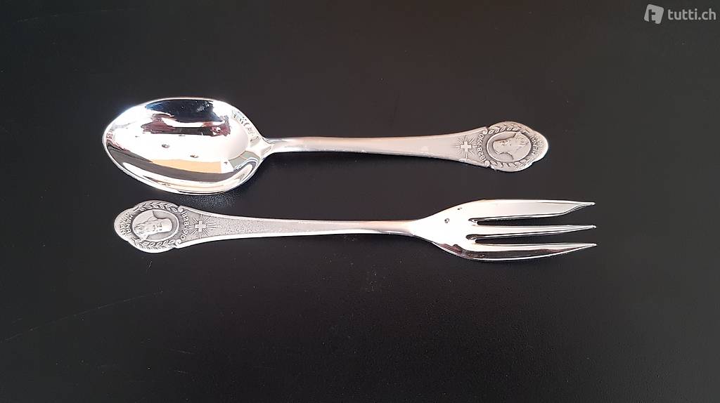 Kaffeelöffel und Dessertgabel, HENRI DUNAT, VERSILBERT