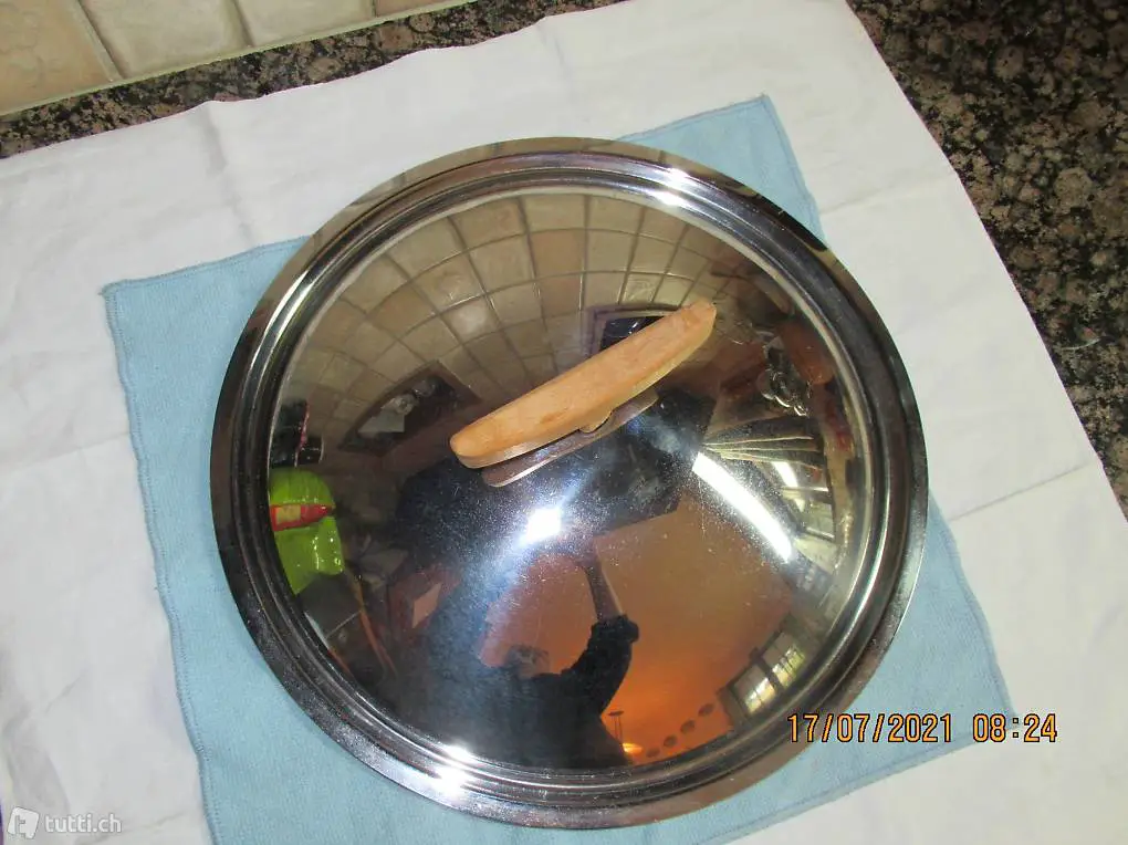 Deckel Chromstahl mit Holzgriff, Kasserollendeckel
