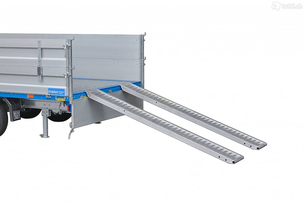 Auffahrrampen Aluminium mit Halterung unter dem Anhänger einschiebbar, Geräuschfrei montiert, mit Klappstützen