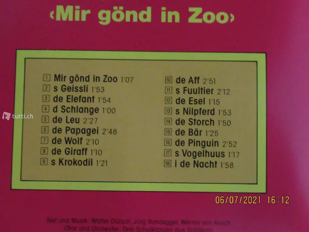 Mir gönd in Zoo, CD vo dä Schlieremär Chind, Cabaret Rotstif
