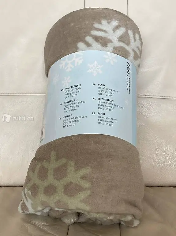 sehr schöne Schneeflocken- Kuscheldecke, grau, aus der Noelini Kollektion von COOP, 130cm x 160cm, 100% Polyester, NEU, nicht benutzt, in Originalverpackung, NP Fr. 24.90 Quittung vorhanden,