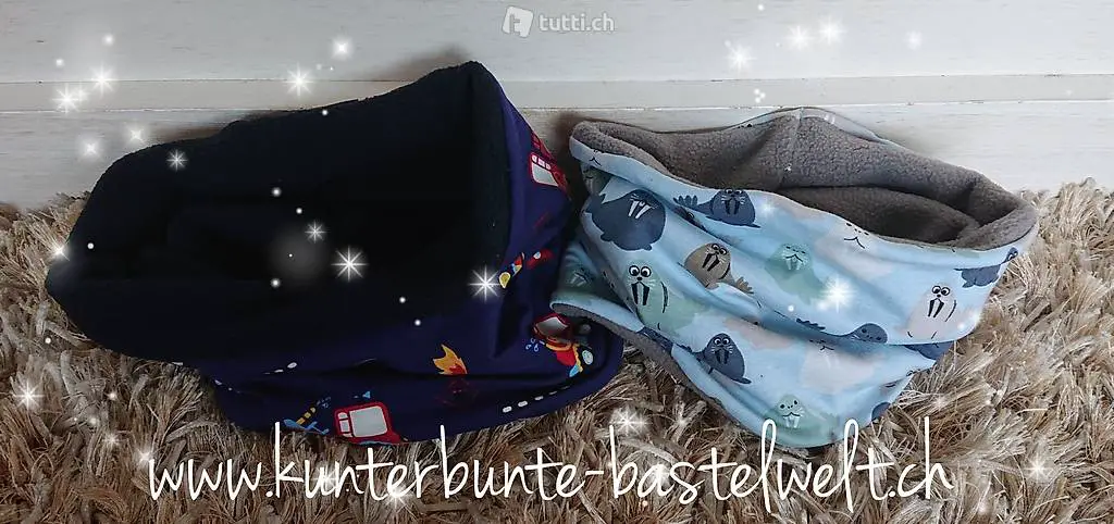 Der Aussenstoff ist aus Jersy und innen für die leichtere version in der Übergangszeit auch mit Jersystoff oder für die kälteren Tage mit Kuschligem Fleecestoff.