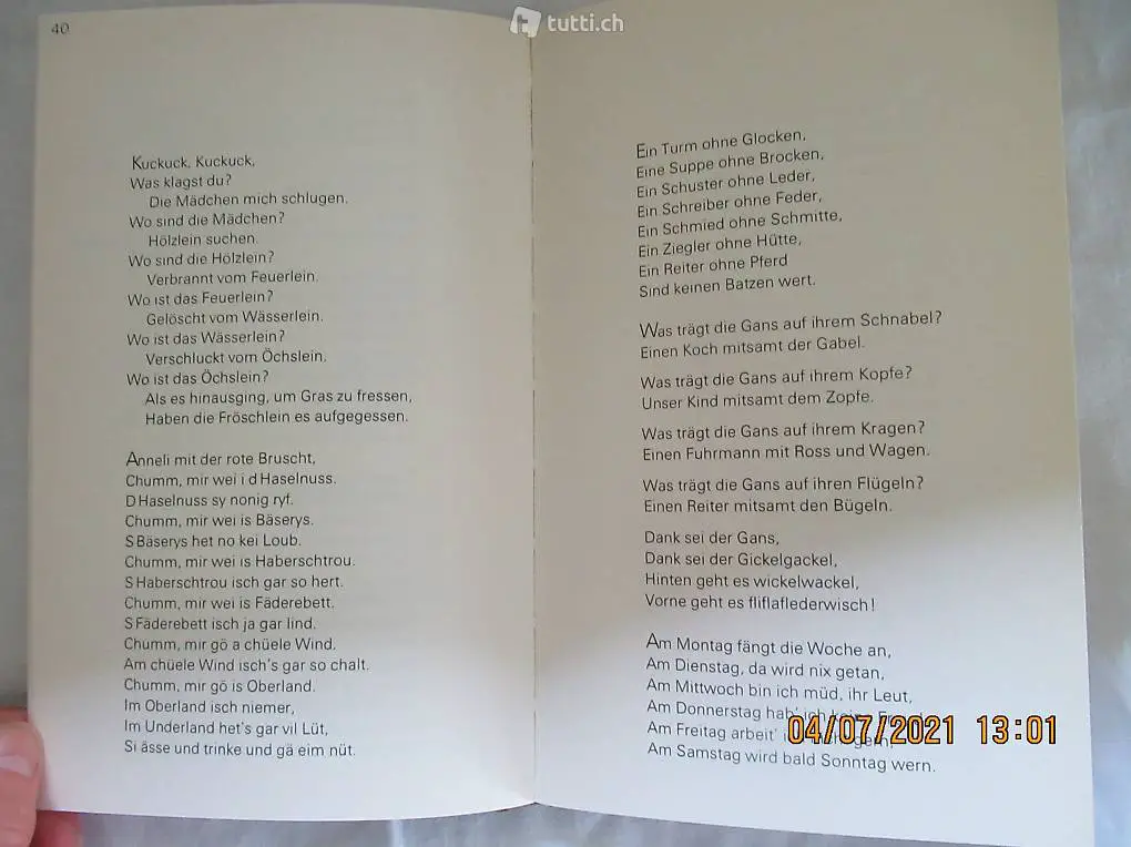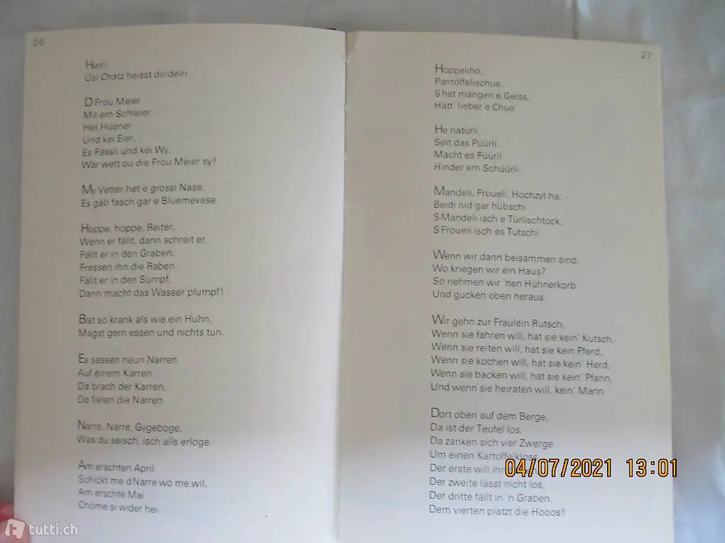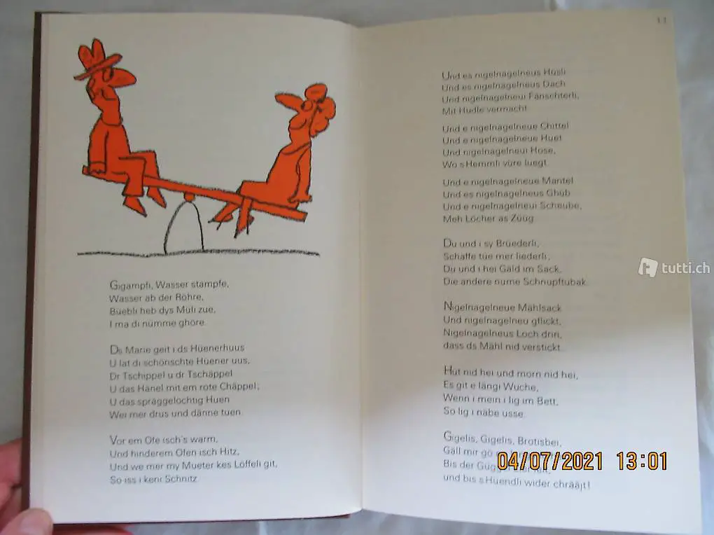 Kinderverse in Mundart und Schriftdeutsch, gesammelt von Fritz Aeberhardt, mit Zeichnungen von Scapa, 110 Seiten, von 1977, neuwertig, nähere Angaben siehe Bilder