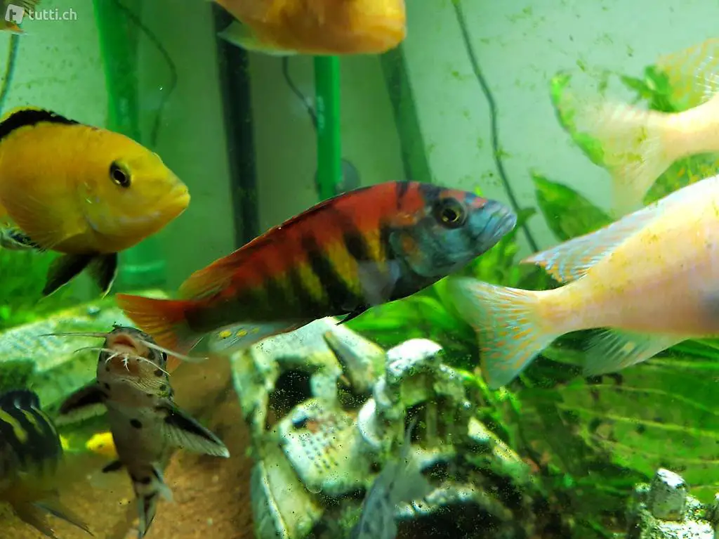 Bei den Mbuna-, sowie bei den Haplochromis-Arten schon teilweise schön ausgefärbt.