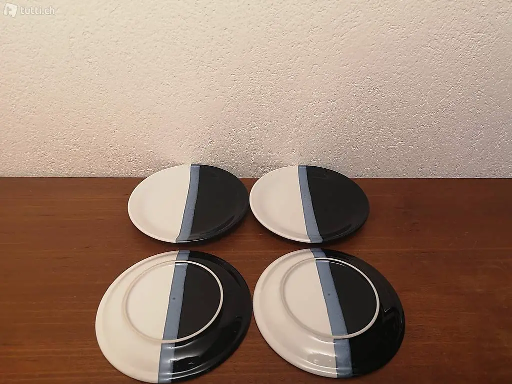 6x gestreifter Keramik Dessertteller vintage kleine Teller