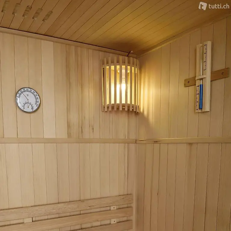Für eine gesunde Wärmeregulierung befindet sich ein Thermometer mit einer Grad- und Luftfeuchtigkeitsanzeige in der Kabine. Mithilfe der integrierten Sanduhr kann die Dauer eines Saunagangs bequem überwacht werden. Ein kompletter Durchlauf der Sanduhr beträgt dabei eine halbe Stunde.