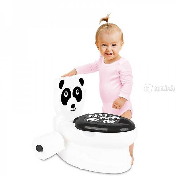 Toilettenpapierhalter am Klo. Mit einem Licht und Sound Effekt beim Spülen werden die Kinder für den Gang belohnt.