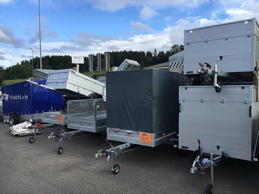 Kühlanhänger Viehanhänger Hebebühnenanhänger Werkzeuganhänger Baggeranhänger Kofferanhänger Bootanhänger etc.