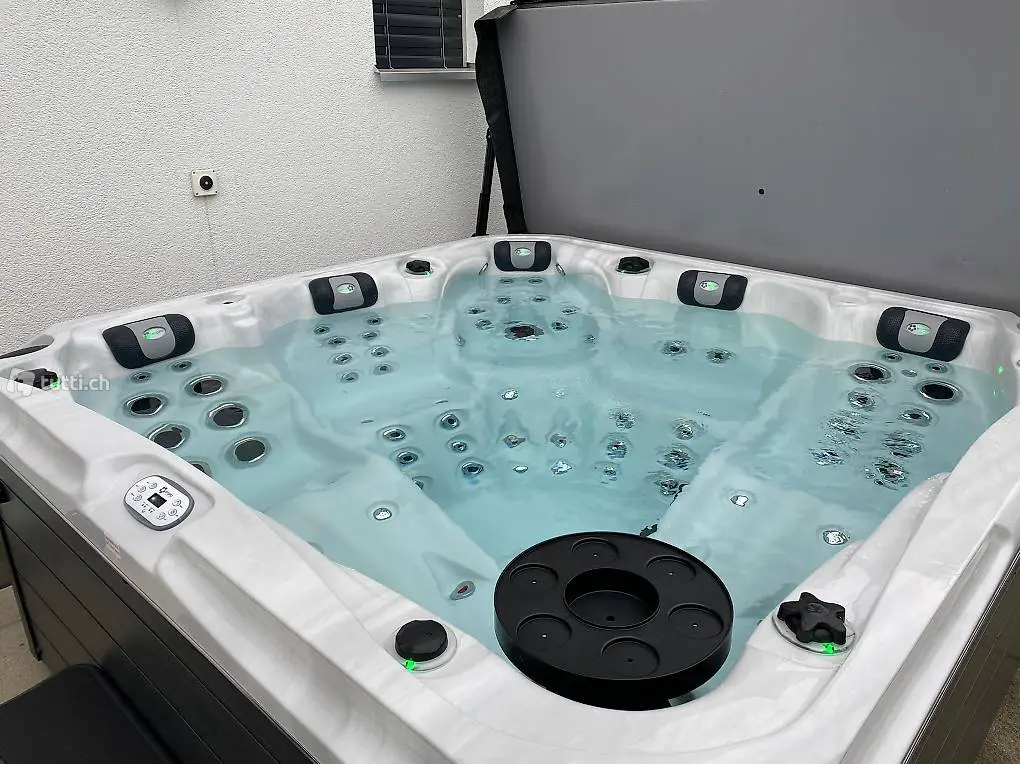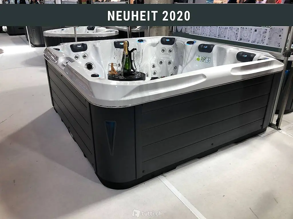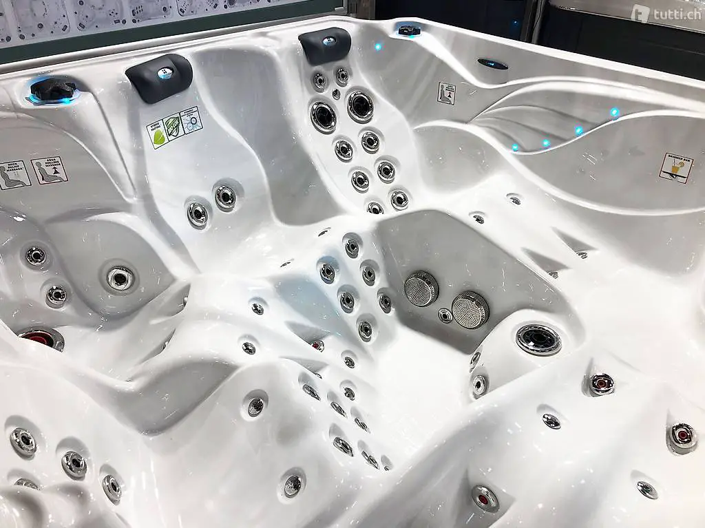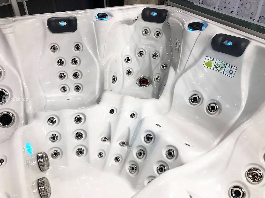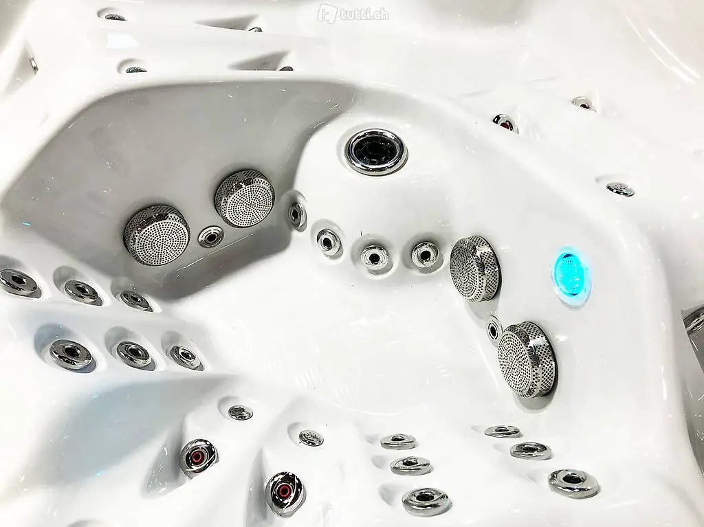 Länge 2.30m | Breite 2.30m | Höhe 0.91m | Düsen: 82 | Luftdüsen: 10 | Balboa | 1480 Liter | 1840 kg gefüllt | Hybrid | Ozonator | UV-