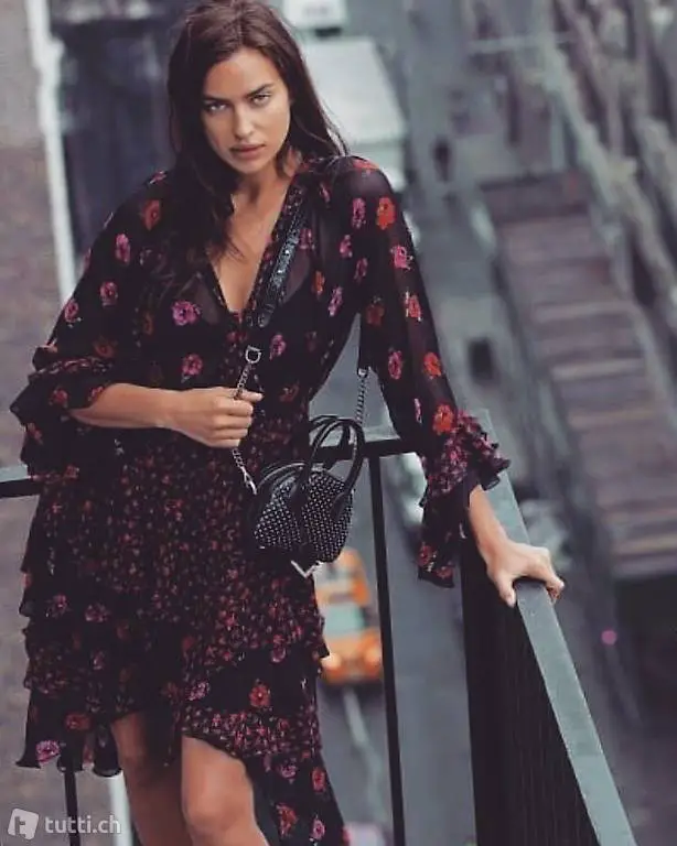 Seidenstoff gefertigt, der beim Tragen ein fliessendes Gefühl vermittelt. Die Volants und der Kragen mit Schleife unterstreichen den femininen Charakter des Kleides. Es ist die perfekte Option für den Frühling und Sommer mit einem Paar Boots (ein Paar Kooples Boots biete ich ebenfalls zum Kauf an) . Das Kleid hat kein Unterkleid.