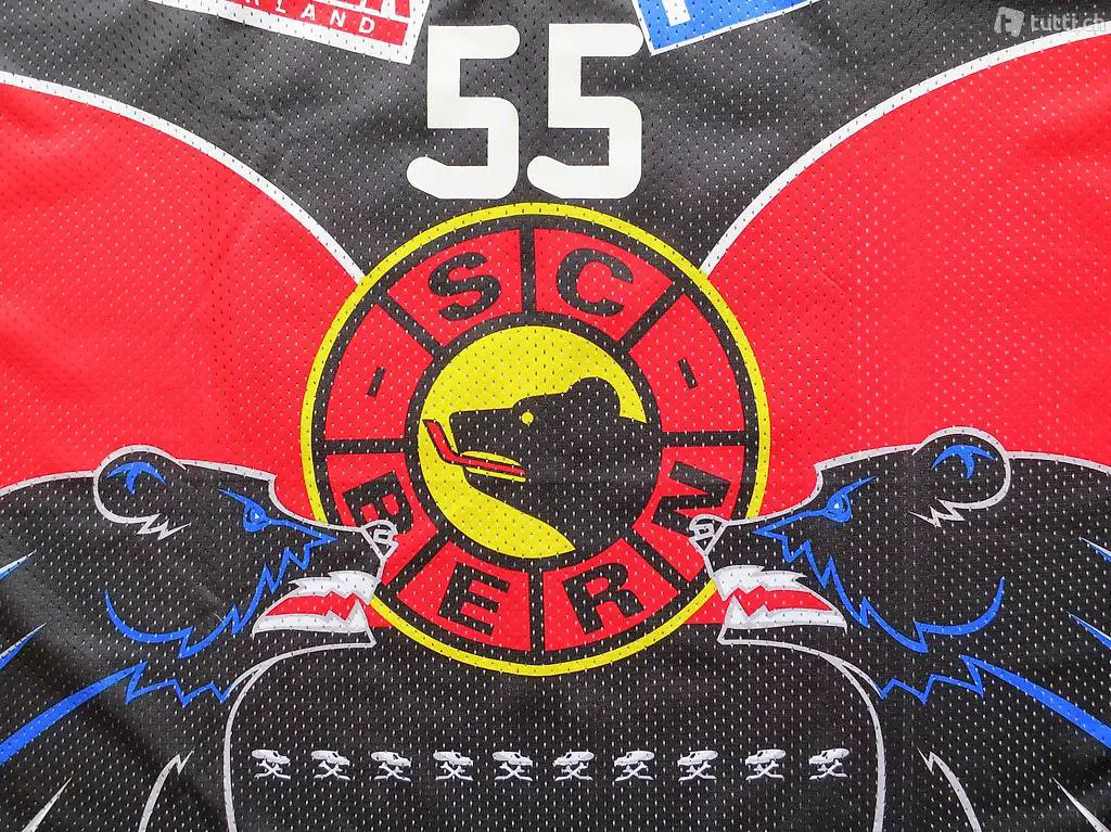Am Ende der Saison 2003-2004 wurde der SC Bern mit diesem Trikot Schweizer Meister (Finalissima 3:2 Playoff-Finalsieg über den HC Lugano - HCL) .