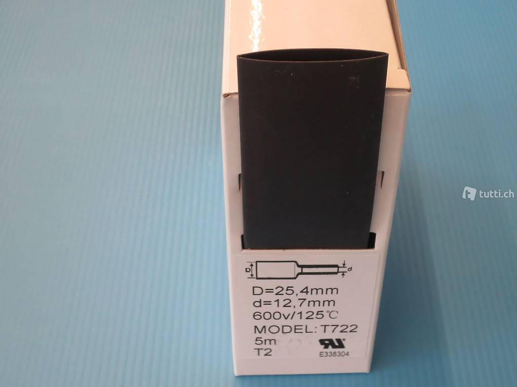Sie sehen hier eine neue Schrumpfschlauch Box mit 5 Meter schwarzen Schrumpfschlauch. Der Schrumpfschlauch hat vor der Schrumpfung einen Durchmesser von 25,4mm und kann bis auf 12,7mm geschrumpft werden.