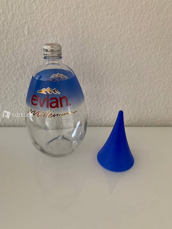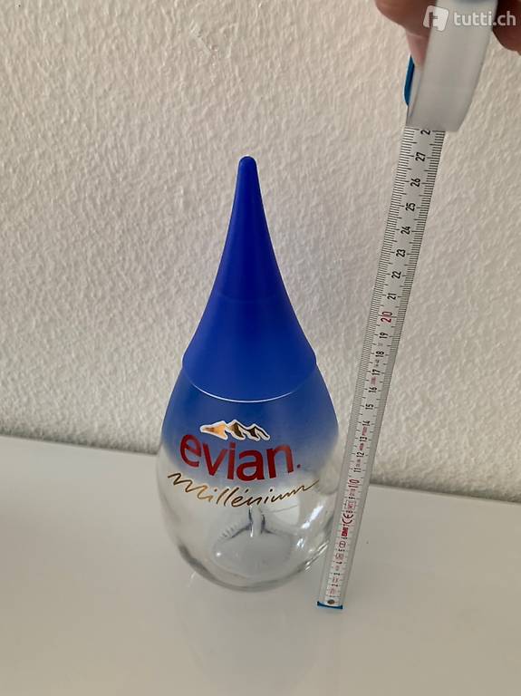 Leere Evian Millennium Sammelflasche in Tropfenform