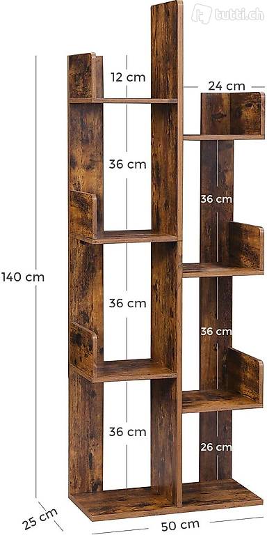Aufbewahrungsregal, 50 x 25 x 140 cm, mit abgerundeten Ecken, vintagebraun