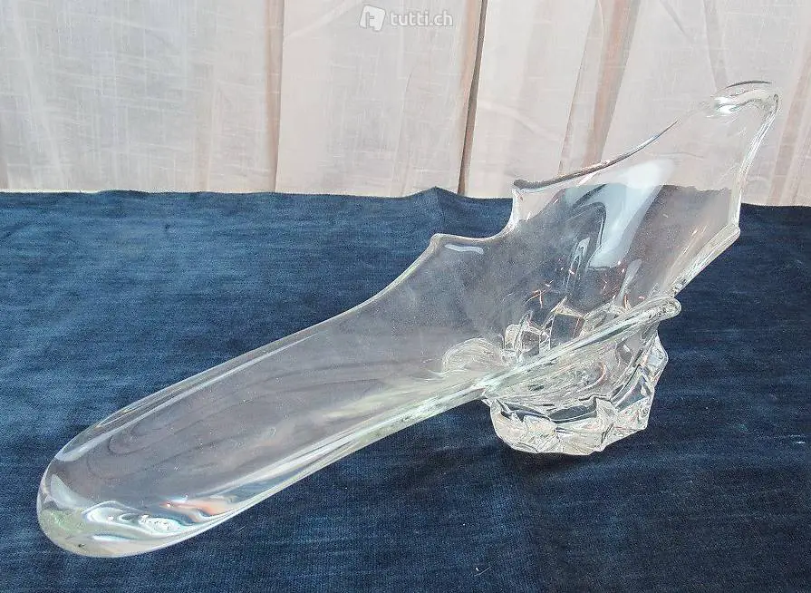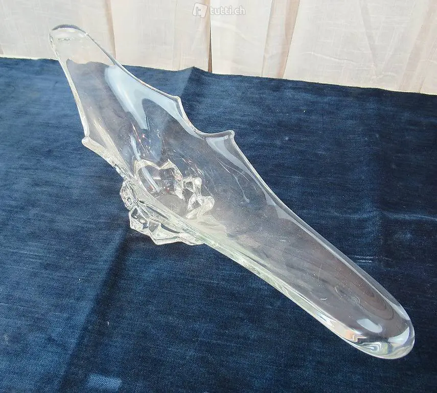 Sehr schöne Schale aus Glas. Sie stammt aus Frankreich. Leider ist uns der Hersteller und das Alter nicht bekannt. Masse ca. 65 x 15 x 19 cm
