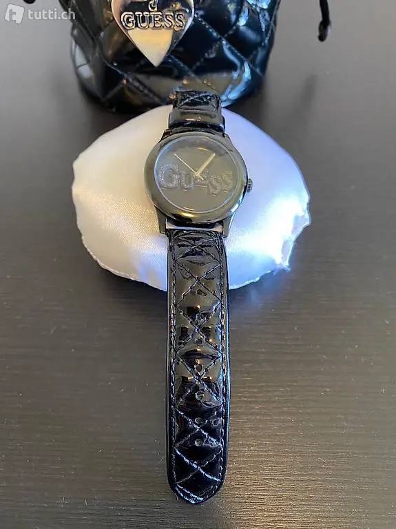 in Schwarz, Ziffernblatt mit dunklen Steinen, inkl. Verpackung, Batterie muss ersetzt werden.