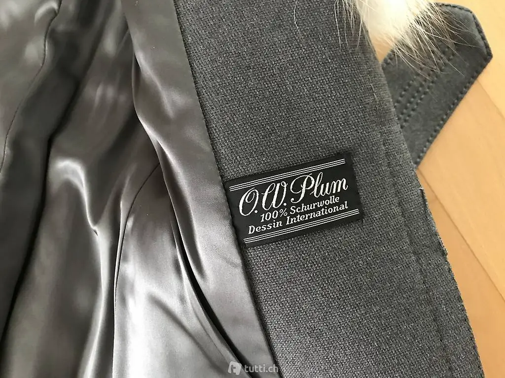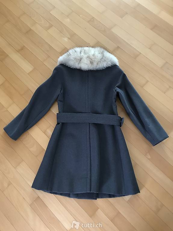 Mantel Schurwolle anthrazyt mit Echtfellkragen, Gr. 36