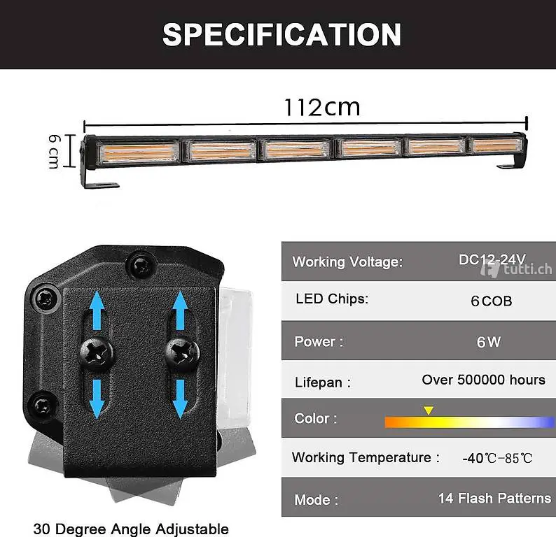 Das LED-Lichtfeld (6 Lichtfelder) ist so ausgelegt, dass der Blitzmodus aktiviert werden kann.Die COB-LEDs sind mehrere LED-Chips, die an ein einzelnes Modul angeschlossen sind.Die Technologie ermöglicht es, die Lichtleistung deutlich zu erhöhen.Es ist sogar tagsüber sichtbar, was für die Installation im Freien in Innenräumen geeignet ist.