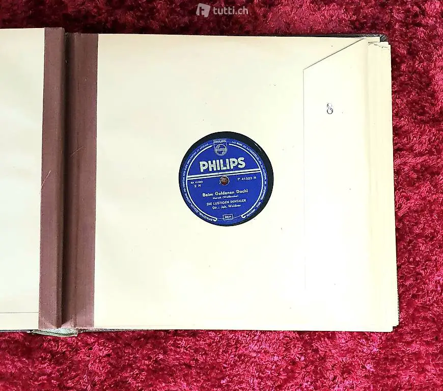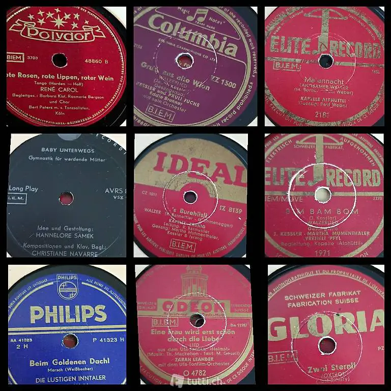 11 Alte Schellackplatten, Durchmesser 25 cm, in passendem Original Album, ca. aus den 60er- Jahren, mit normalen altersbedingten Gebrauchspuren.