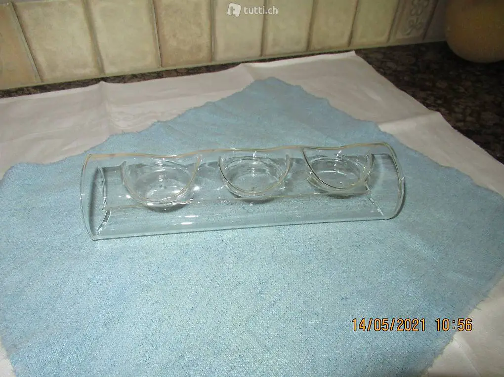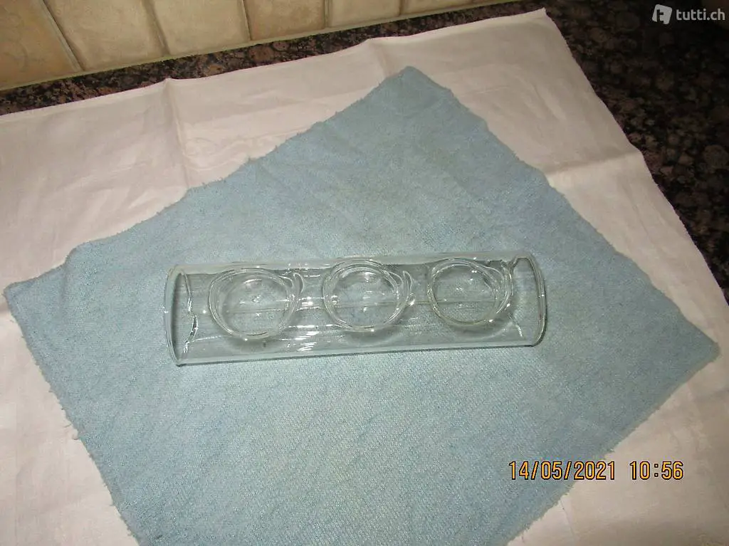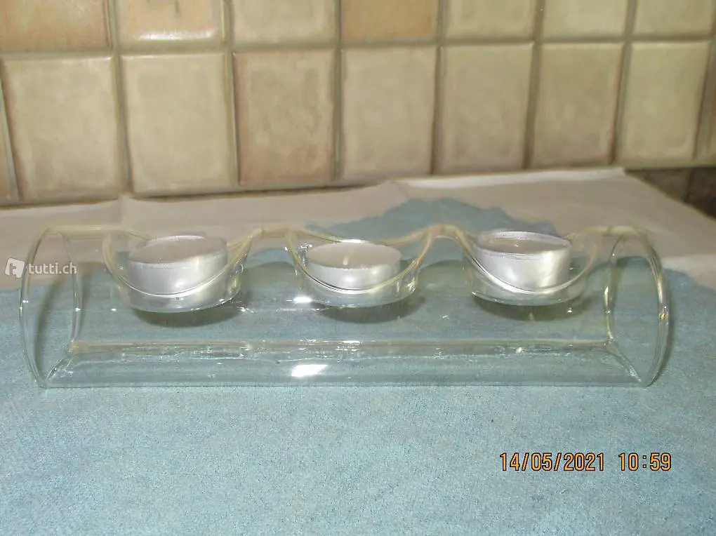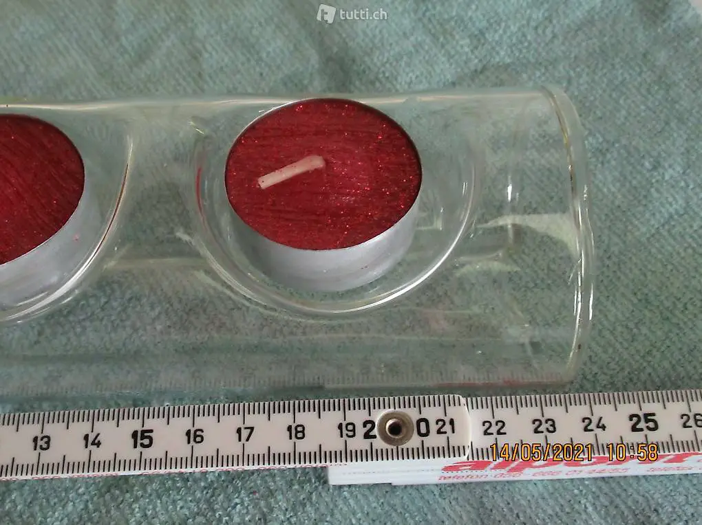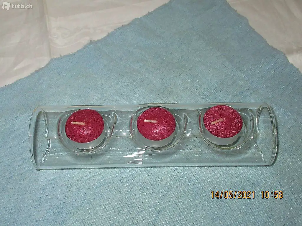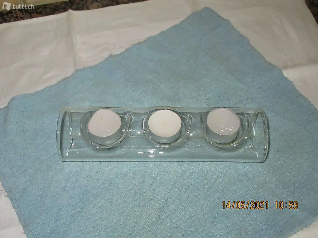 Teelicht mit 3 Vertiefungen für Rechaud-Kerzen, eine Glasröhre mit festem Stand, neuwertig, Masse siehe Bilder