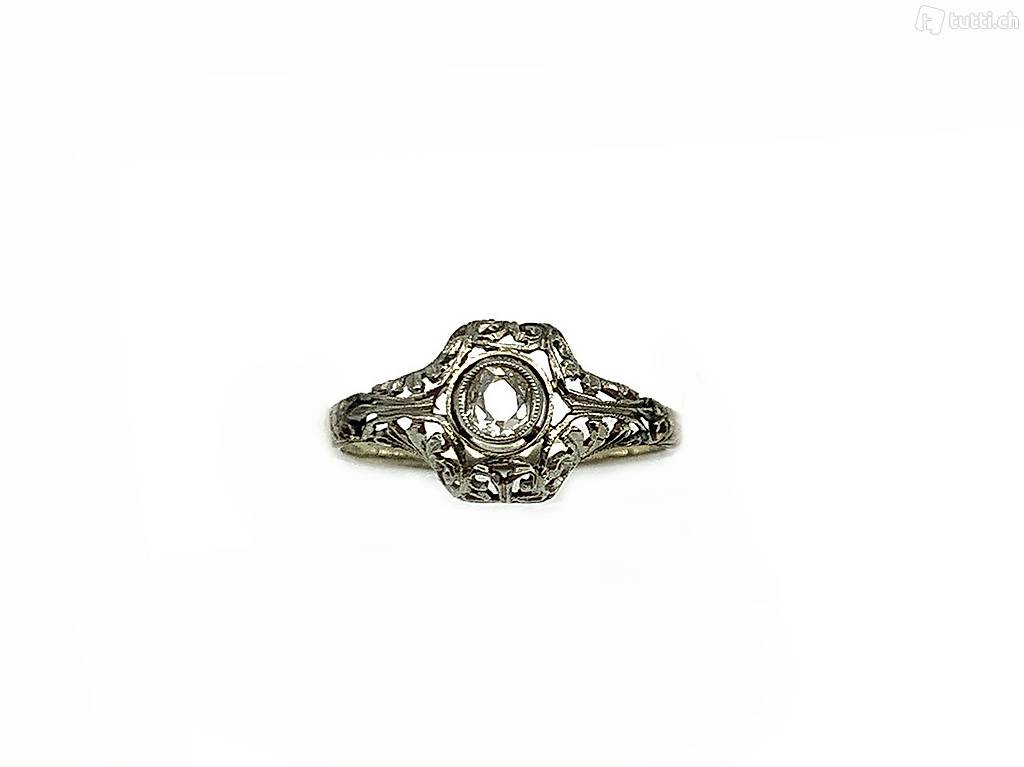 Anello antico Oro e Diamante Solitario 0,10 Carati