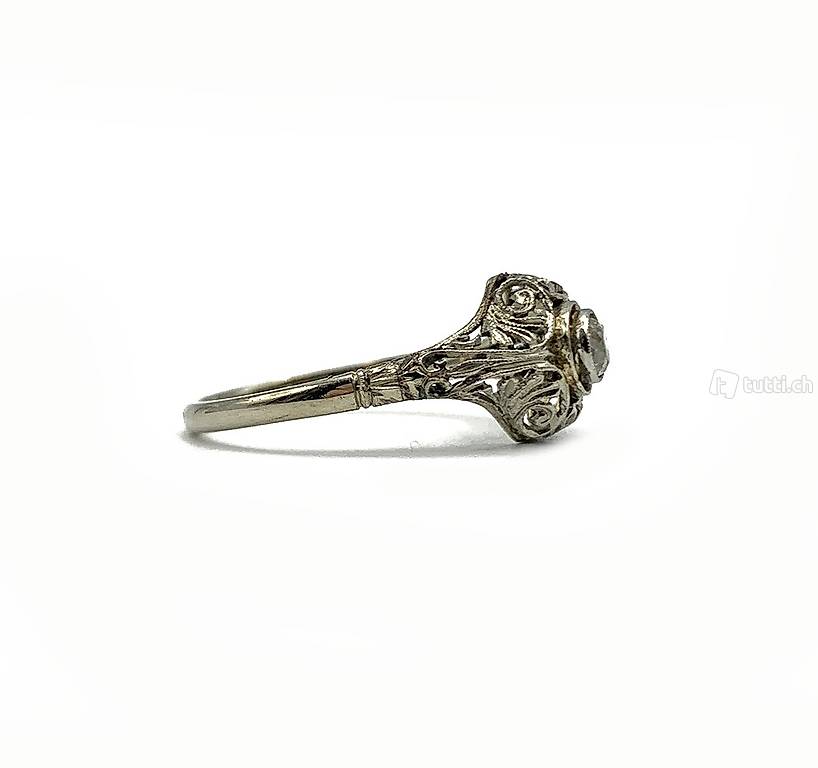 Splendido anello d'epoca in oro bianco 18Kt cesellato a mano