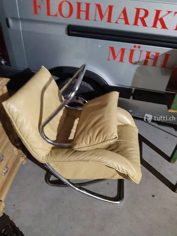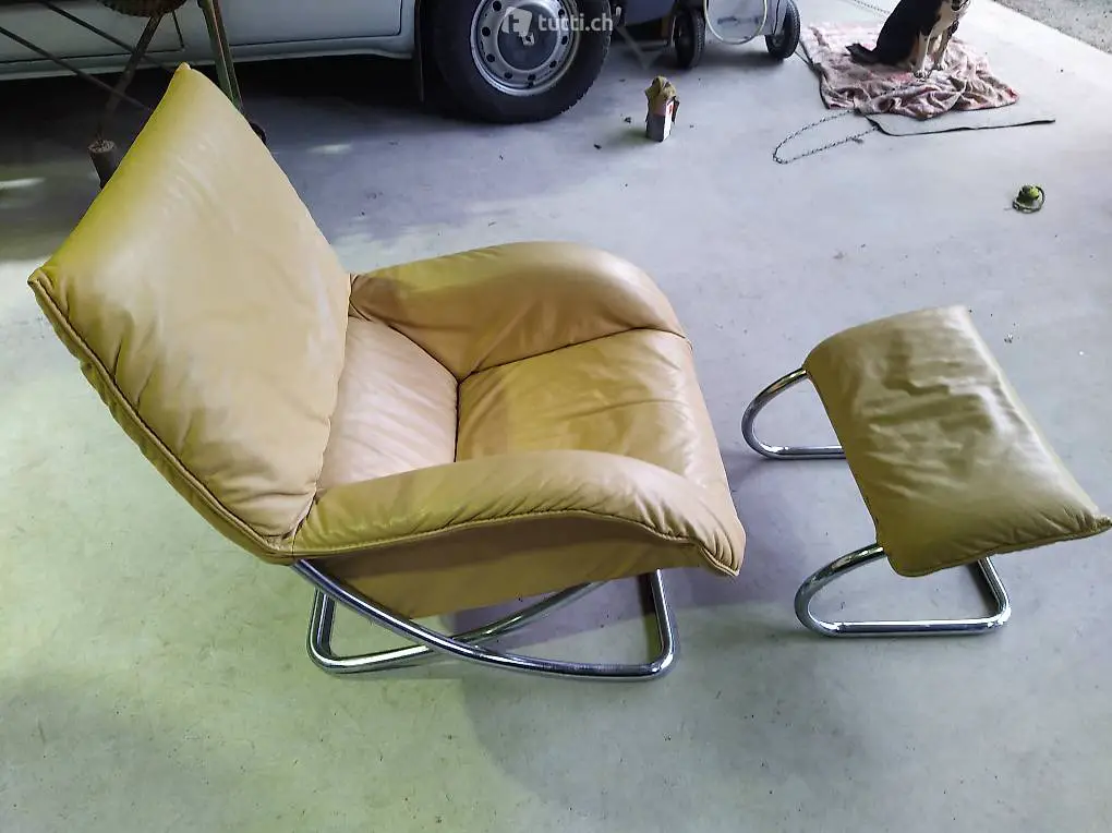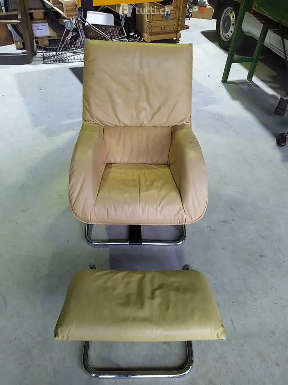 Leder Sessel mit Schaukelfunktion und Fussteil