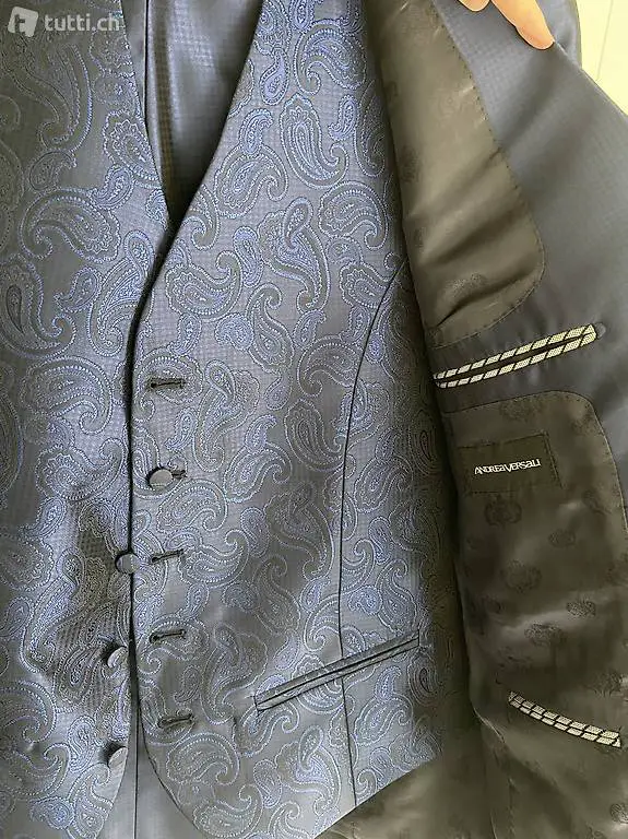 Vendo come da foto abito da sposo o da cerimonia Andrea Versali di colore blu (misura 54) .