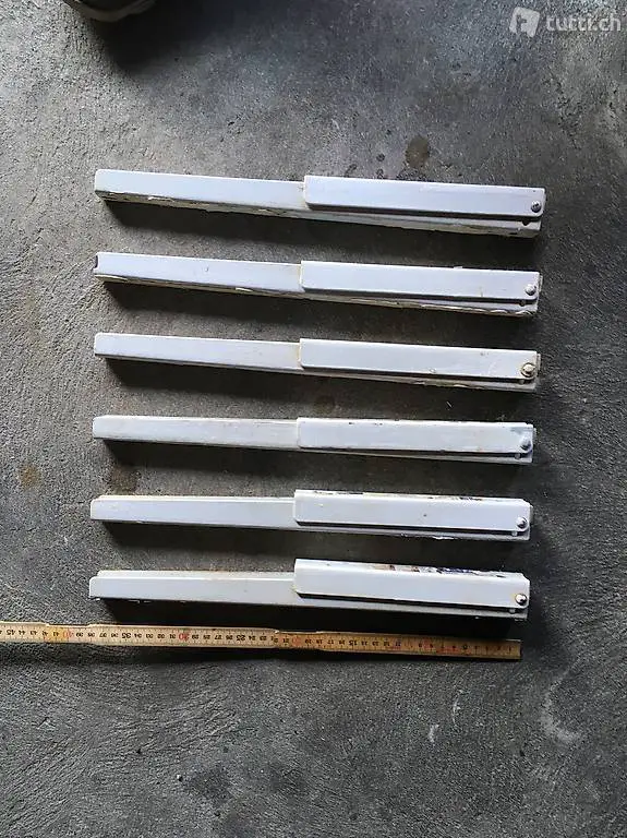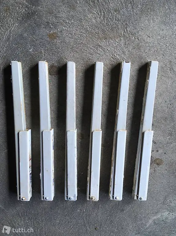 verk. altershalber die 6 gebrauchten weissen Metallkonsolen in gutem zustand, ich brauchte sie als Pflanzenabdeckung hatte oben 65 cm Holzkeile aufgeschraubt und weisse Sperrholzplatten dass der Re gen gut ablaufen kann und war ein sehr guter schutz für Rosen, sonstige Pflanzen Blumenwagen Velounterst and unterstand usw. kann auf und zugeklappt werden sie auch günstig bar ab Platz !