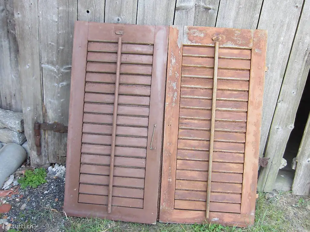 Antike Fensterläden aus Holz / Holz Fensterladen alt / Holzladen mit beweglichen Lamellen.