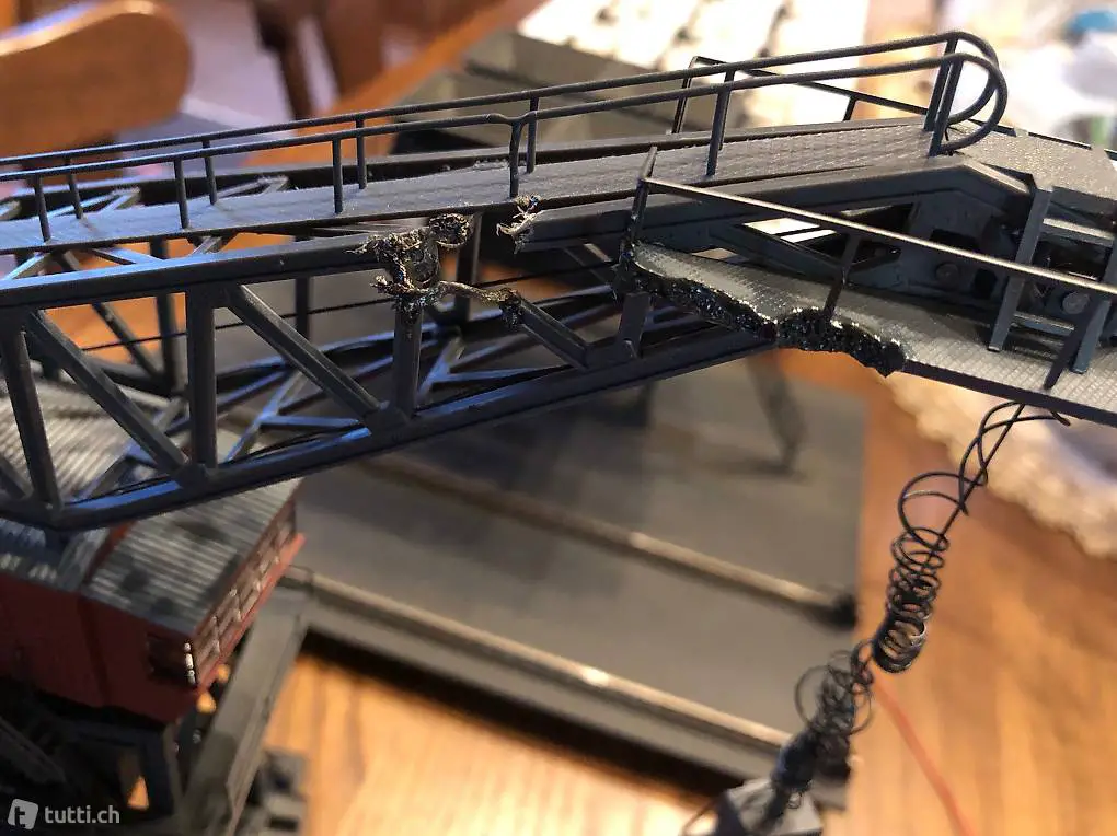 Piattaforma Gru Märklin 76510...come si può notare una parte del braccio della gru si è fuso.