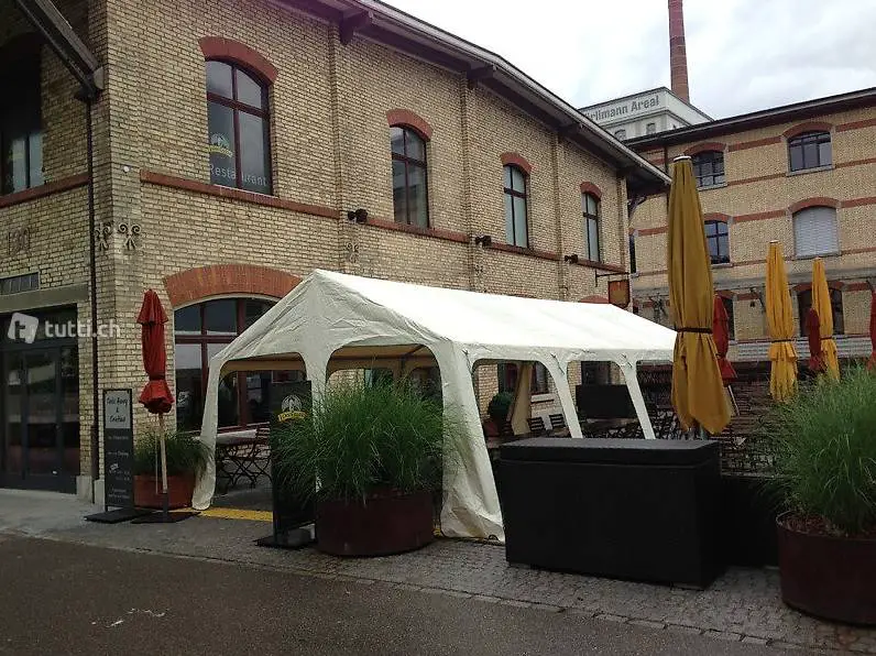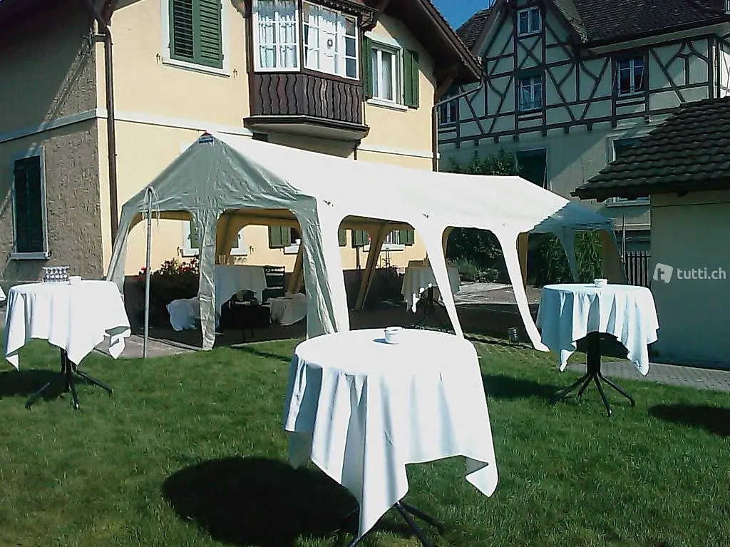 Partyzelt 5x8m. Beim Preis von 550 CHF pro Weekend, stellt der Mieter 2 Personen beim Auf- und Abbau. Der Preis von 550 CHF versteht sich in der Region Zürich (PLZ 8XXX) . Im Preis inkl. sind
