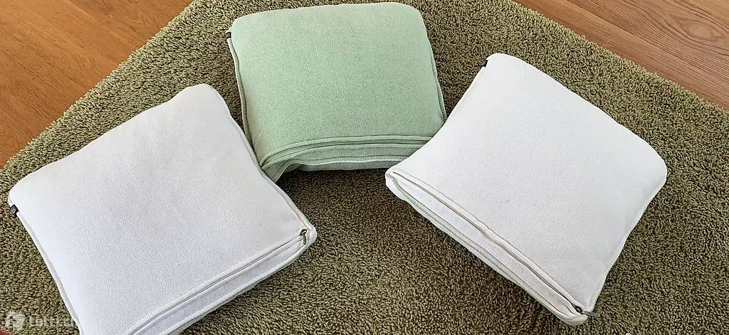 Reissverschluss, waschbar. 50 x 50 cm. Neupreis war 80? pro Stück. Kissenfüllung Daune 10 Fr. Der farblich passende