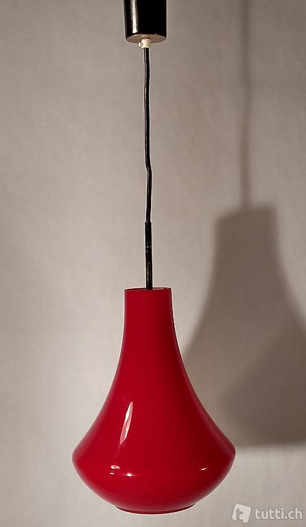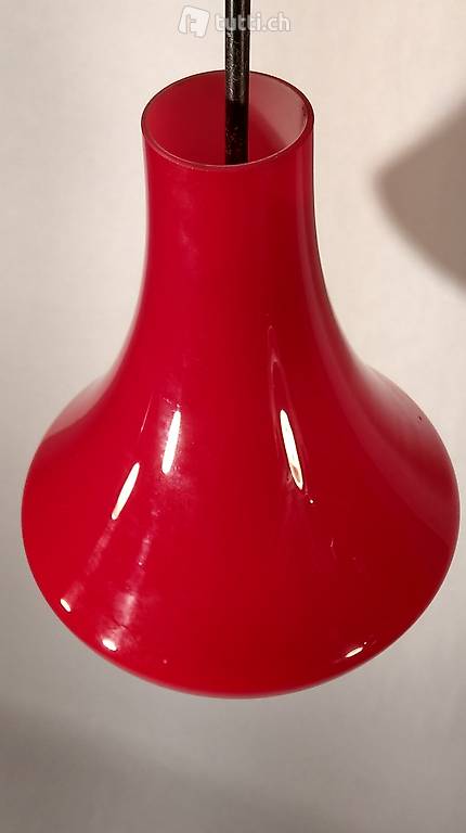 Deckenleuchte aus den frühen 60erjahren aus rot überfangenem Opalglas