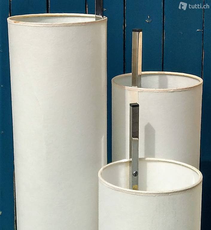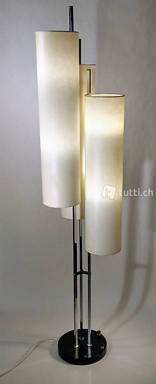 grosse röhrenleuchte mit 3 reflektorröhren aus japanpapier / leimpapier. 3 x 2 e27 birnen, jede röhre einzeln schaltbar am fuss,