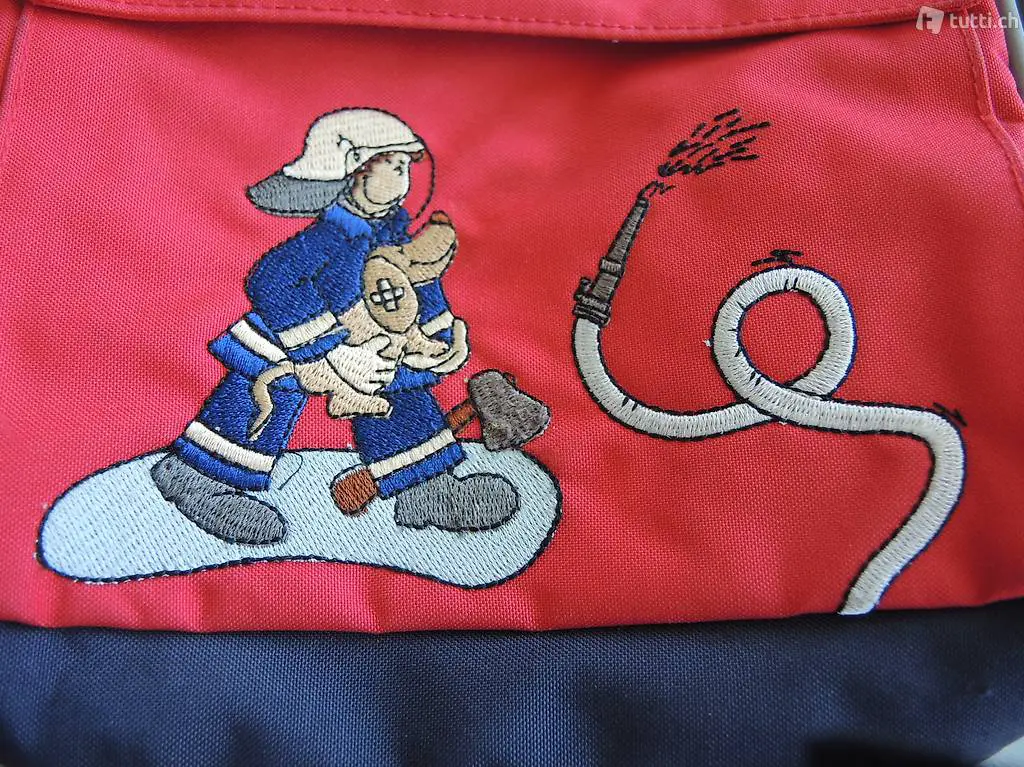 Grundfarbe rot, mit blauem, verstellbarem Träger
