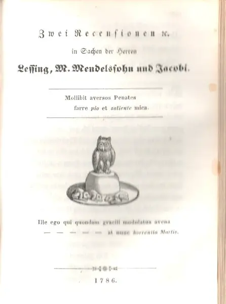 Kurzinfo: mit 16 ganzseitigen Abbildungen und weiteren kleineren Abbildungen im Text. Plus "Zwei Recensionen$" in Sachen der Herren Lessing, M. Mendelssohn und Jacobi.