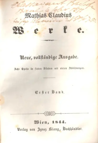 Verlag: Ignaz Klang, Wien. Neue, vollständige Ausgabe 1844