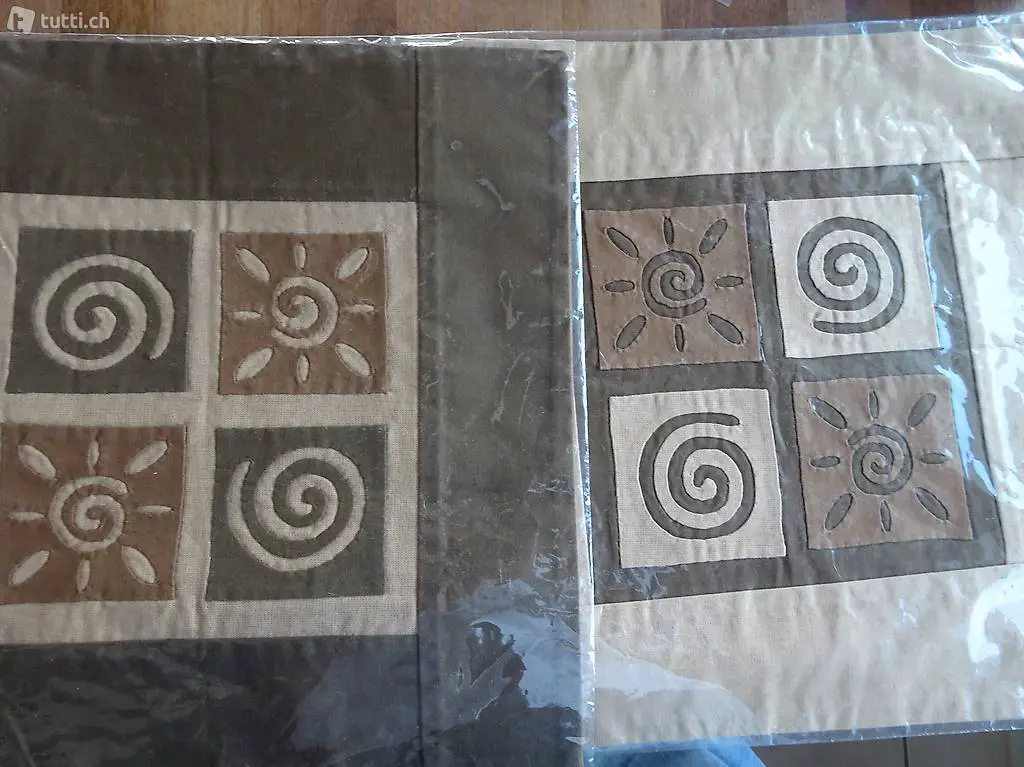 Kissen-Anzug 2 Stück mit Reissverschluss. Braun und hellbraun mit schönem Muster. Neu und in Verpackung.