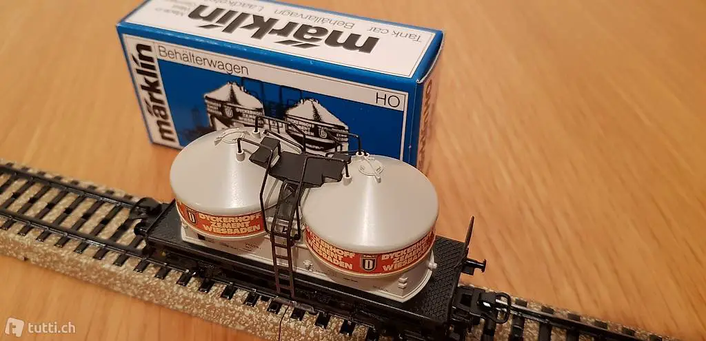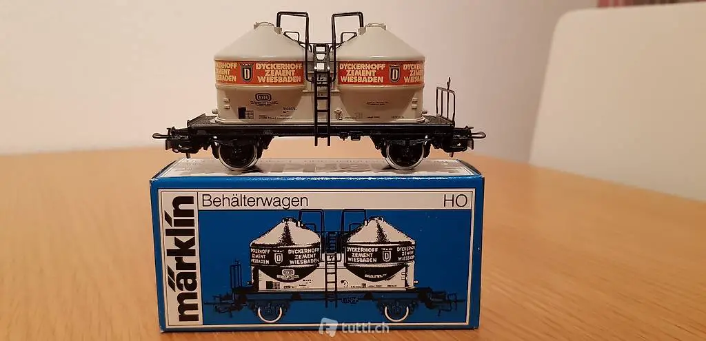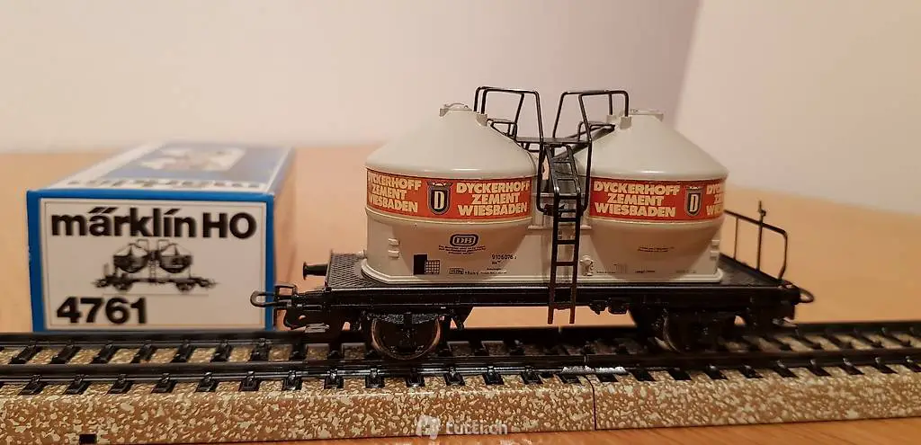 Zu verkaufen Märklin 4761 Behälterwagen Dyückerhoff Zement DB. Der Wagen ist neuwertig und unbespielt in OVP . Porto 7.-- .Für Fragen stehe ich ihnen gerne zur Verfügung .Mfg T.Lohner